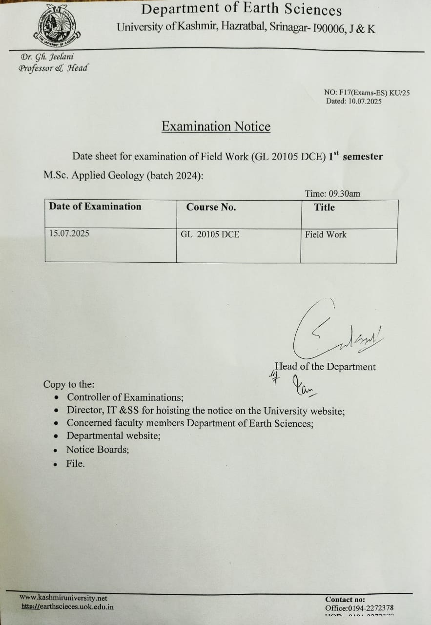 Examination of "Field Work" course code Gl20105 DCE of 1st semester Batch 2024 Please view the notice View